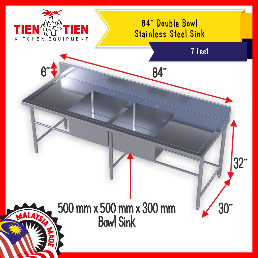 SS/SK10 TIEN TIEN Stainless Steel Double Bowl Sink Table 7 Feet (84")