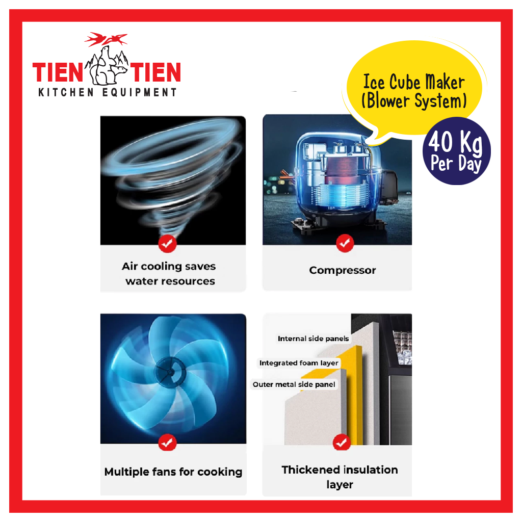 ZB120 Ice Cube Maker Blower System - 40Kg/Day (Self Contain) Self Suction & Direct Water